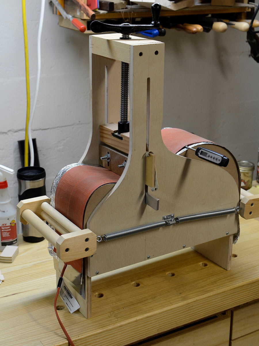 An unforeseen advantage is that when you’re using two slats, you can make each slat thinner, which is great if you’re using difficult bending woods, like maple. I used .075″ slats rather than my typical .085″ with this sugar maple, and the improved ease of bending and smoothness of the resulting bends is noticeable.