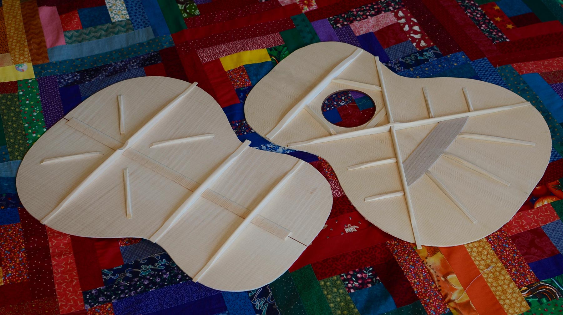 There are a lot of ways to apply a sunburst. I like to use wood dye and work directly on the wood similar to the method used by violin makers (and guitar and mandolin makers before sprayed finishes became the norm). The method enhances the grain of the wood because dye interacts with it, becoming darker in the areas where the water base of the dye is held and stays wet, like areas with curl in the wood fibers. If you love the quirkiness of wood and like the way that watercolors look, then this method might be for you. It is, however, less predictable than spraying color coats over a sealed wooden surface. I think it’s worth the extra work and a little risk! Continue reading “Making a Dyed Sunburst”