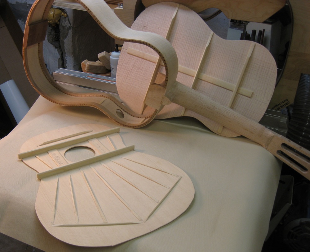 The bodies are in good shape, and the necks are well under way. I hope to have these guitars finished in early June. The price will be $2600 for either guitar.