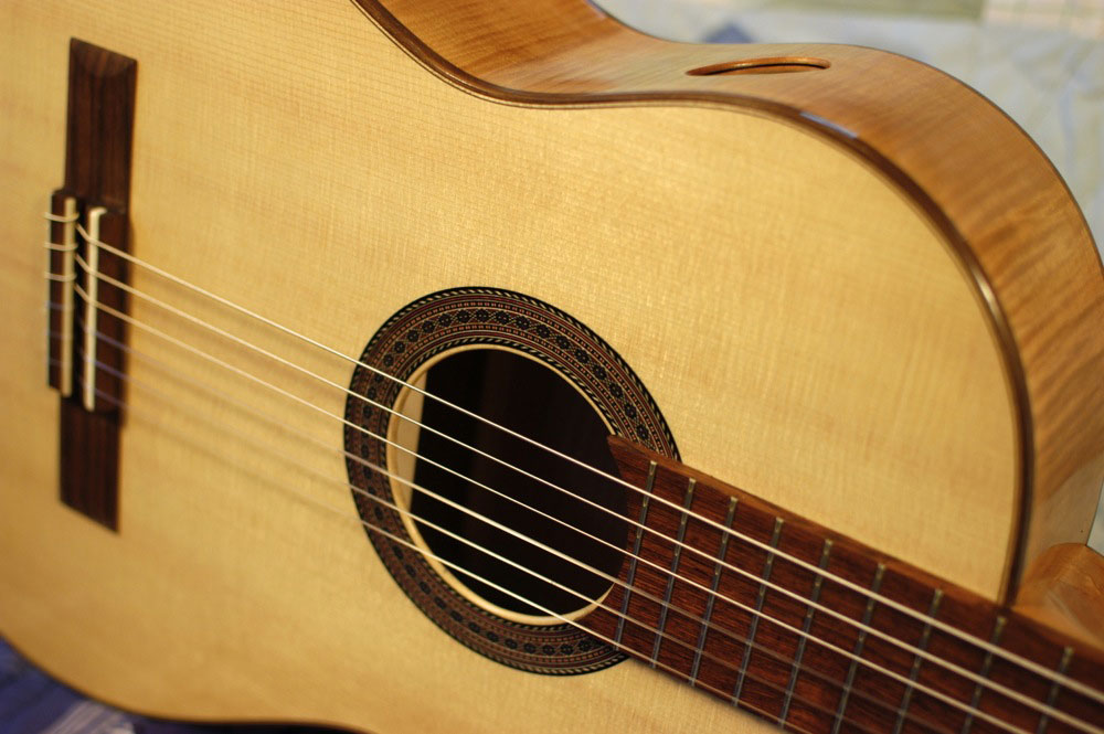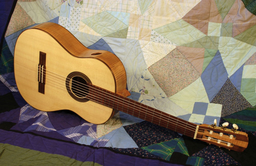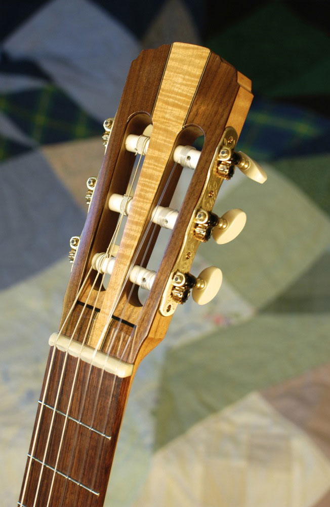 I’ve made nice progress on a 14-fret auditorium and an orchestra guitar, both made of lovely air-dried walnut. What’s the difference between those models? Mostly scale length. The bodies have the same shape, but the top bracing has been shifted accordingly. (Here’s a comparison graphic of my model sizes.) I used a different rosette and purfling design so that I wouldn’t mix them up at a critical moment.