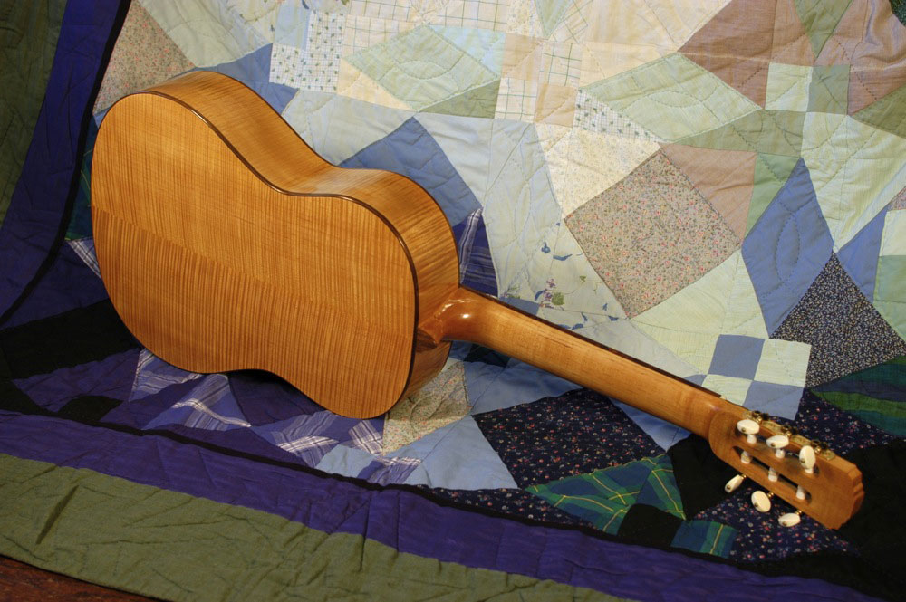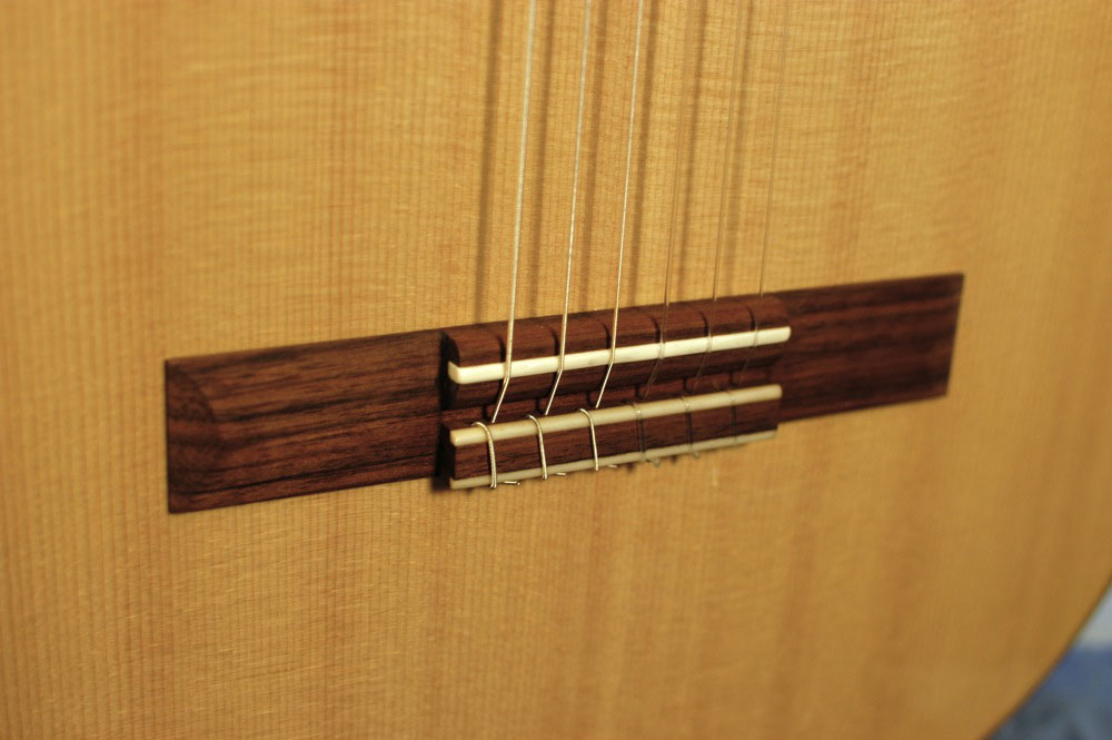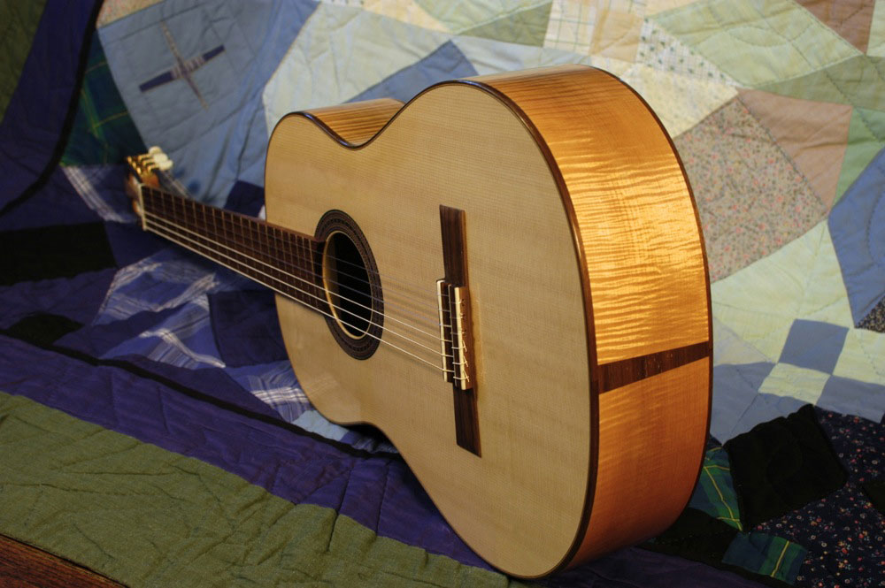 This pair also uses a hybridized bracing scheme that relies on the X-brace for the overall structure but uses a Torres-inspired lower fan in the belly area. I’ve been very happy with the guitars I’ve built with this scheme, and on this pair I’ve even trimmed down the lower legs of the X-brace a bit more because the fan structure does a nice job of resisting the torque of the strings on the bridge.