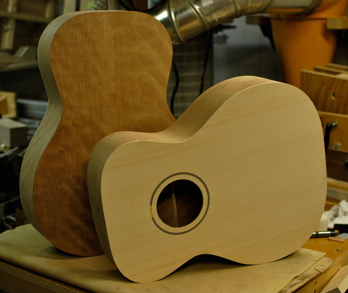Front: orchestra prototype showing Adirondack spruce.